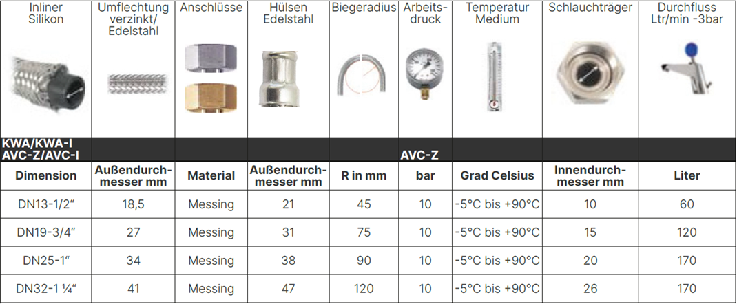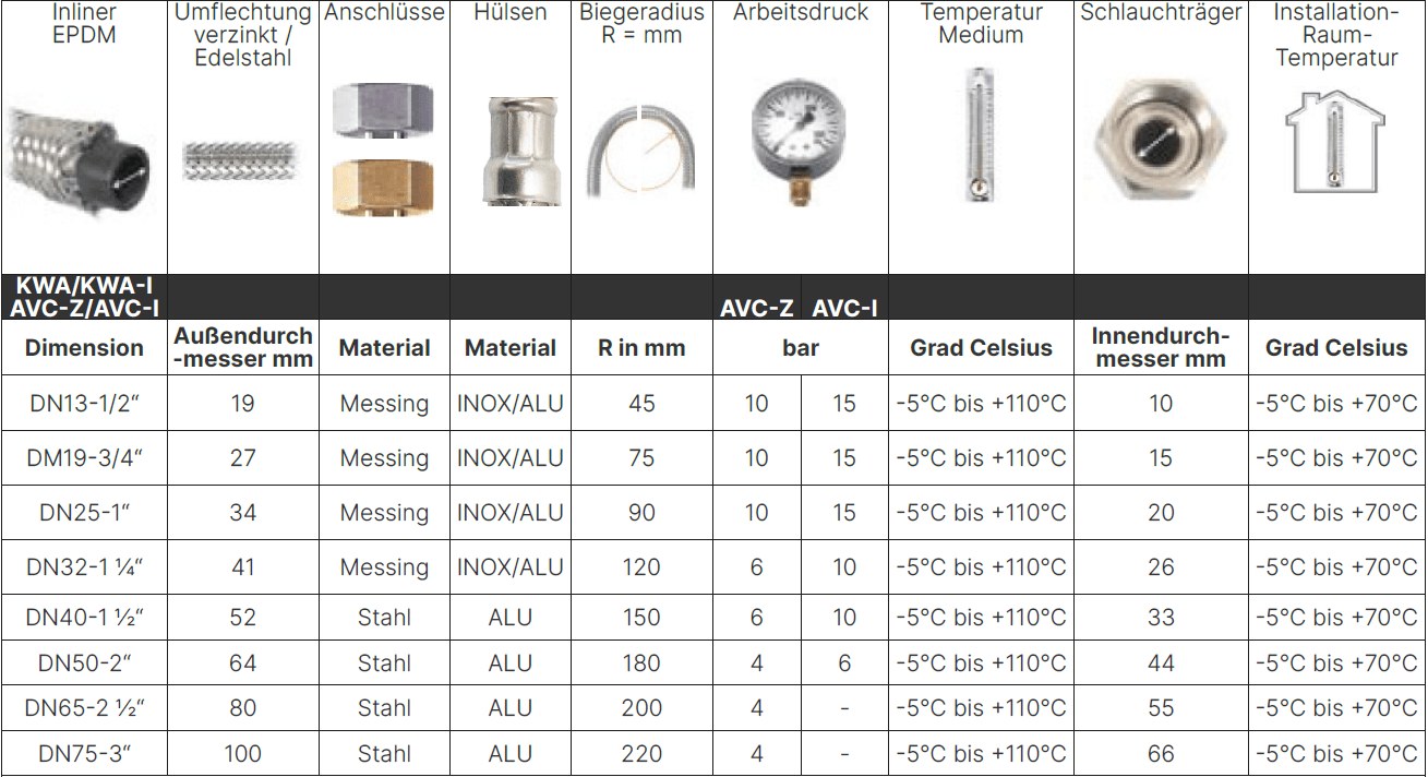 WIPAFLEX flexible Verbindungsschläuche Baureihe AVC für Heizungsanlagen und Brauchwasserstationen