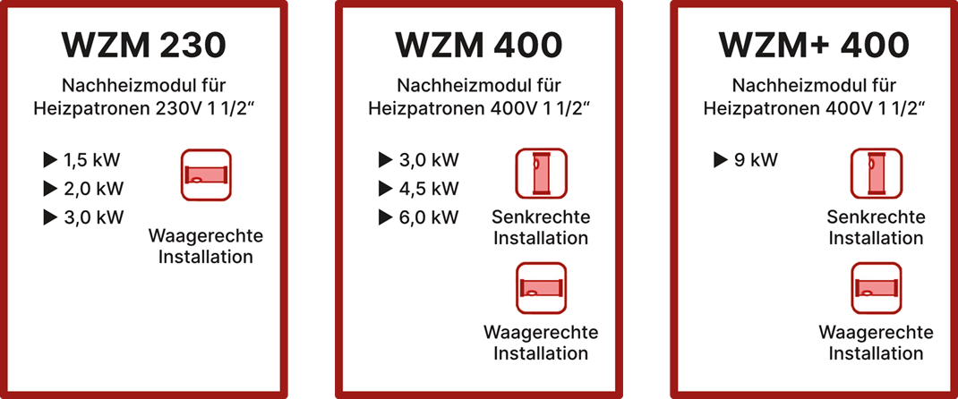 WIP® Zusatzheizmodul WZM ist als Komplettset incl. Heizstab oder auch einzeln lieferbar.